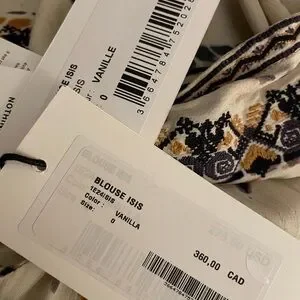 Ba&sh Cream and Lavender Boho Peasant Blouse NWT