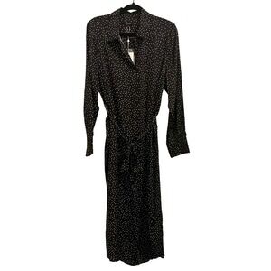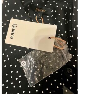 NWT Quince Silk Maxi Shirt Dress Black White Polka Dot Belted Size L