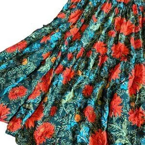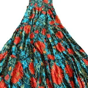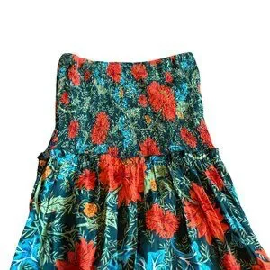 Abel the Label Green Red Strapless Dress Floral Print Maxi Length Size Small