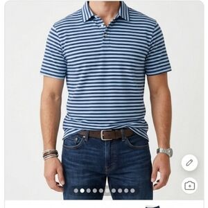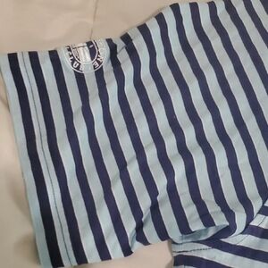 Upgrade your wardrobe with this classic navy striped polo shirt. Perfect for casual outings, it combines style and comfort effortlessly.