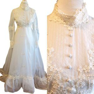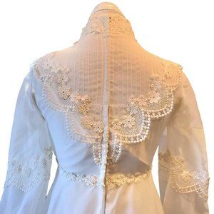 Vintage 70s Prairie Lace Wedding Dress Edwardian Victorian Pioneer Sheer Puff.