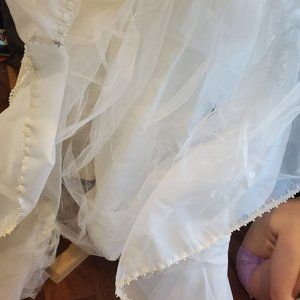 •a few of the crochet flower appliques on skirt look more ivory than white