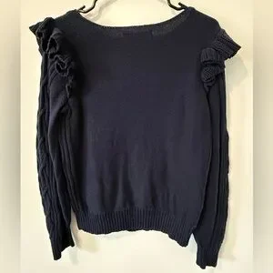 LOFT Navy Cable Knit Ruffle Shoulder Sweater Size Medium