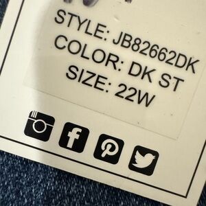 Judy Blue Mid-Rise Boyfriend Crop Cuffed Jeans Dark Wash Size 22W NEW Stretch