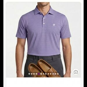 Peter Millar Crown Crafted Classic Purple Striped Polo Shirt Size L