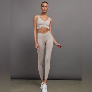 Keywords: Carbon38 leggings, wrap waistband leggings, high rise yoga pants, heather melt leggings, sculpting leggings, compression leggings, athleisure style, gym wear, Pilates outfit, buttery soft activewear, size small leggings. ap Legging – Heather Melt – Size Small