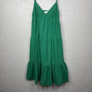 Y2K Babydoll Cotton Green Dress Small Resort Strappy Tiers Boho Fairy Coquette