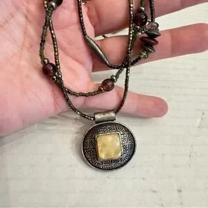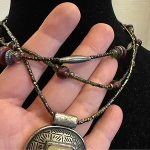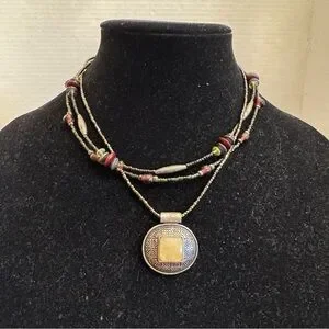 - 3 string beaded necklace with a statement pendant