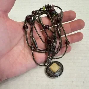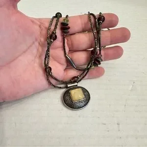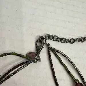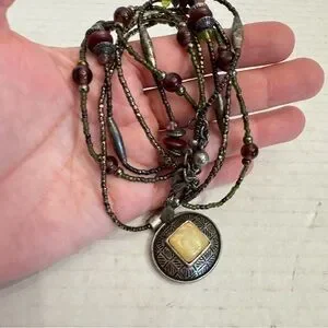 Chico's Pendant Multi Beaded String Necklace Choker Green Earth tone - 16-19" Length