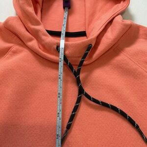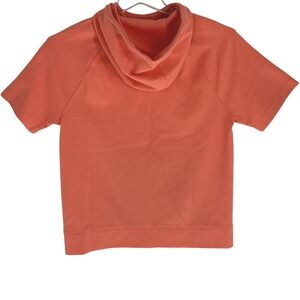 A Women's Old Navy Active Dynamic Fleece short sleeve hooded sweatshirt. This top features a hooded neckline with adjustable drawstrings and a front kangaroo pocket.