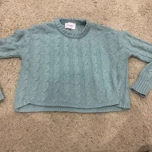 Pink Rose Sage Cable Knit Sweater XS Chunky Crewneck Cozy Pullover