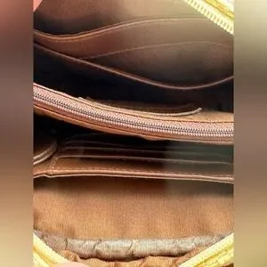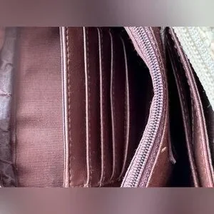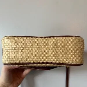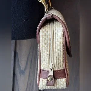 Stylish woven design with beige and brown tones. Perfect for any occasion. Enhance your look with this chic accessory. Comes with detachable key holder.