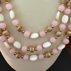 Spring Colors Pink and Gold Tone Beaded Necklace