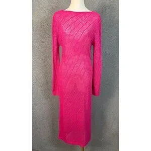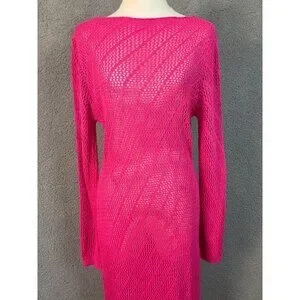 Pink Long Sleeve Crochet Knit Dress Sheer Cover-Up Size Medium New Without Tag's