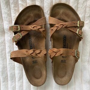 Birkenstock Tan Leather Sandals with Cute Braided detail