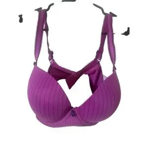 Freya 32F Deco Hattie Underwire Moulded Plunge Bra Purple Striped EUC