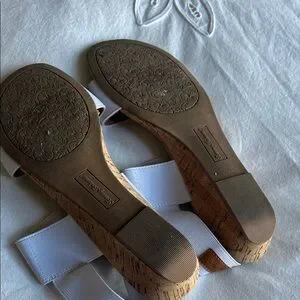 Elegant white sandals with a comfortable cork footbed. Ideal for casual wear.