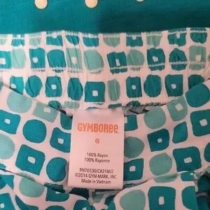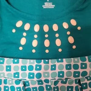 Teal top with geometric pattern. Bright yellow tee. Black top with abstract design. Worn once.