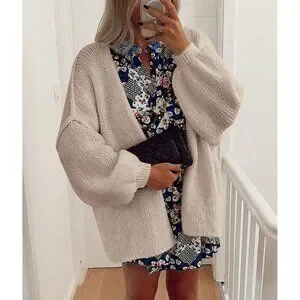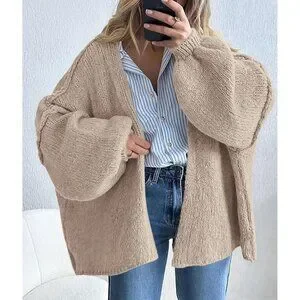 Womens Oversized Cardigan Sweaters 2026 Fall Long Lantern Sleeve Knit Open Front