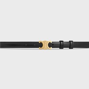 Sleek black leather belt with a striking gold accent. Ideal for elevating any look.