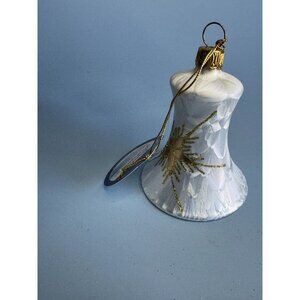 Lauscha Glassworks White Pearly Blown Glass Gold Trim Bell Ornament Germany