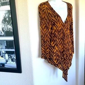 French Laundry open cardigan, tiger print, brown /carmel, long sleeves L