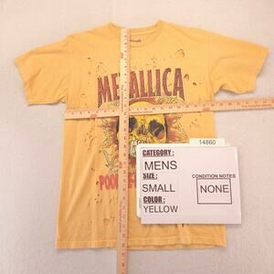 Metallica Band Crew Neck Graphic Short Sleeve T Shirt Mens Size Small S Yellow
