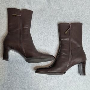 Lauren Ralph Lauren Colleen Brown Leather Mid Calf Boot Heeled Womens 6 1/2 B