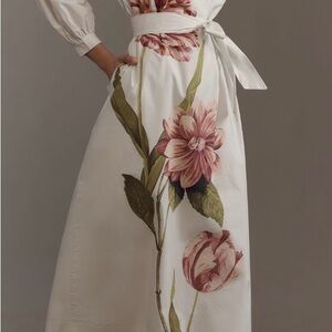 Anthropologie Floral White Midi Dress