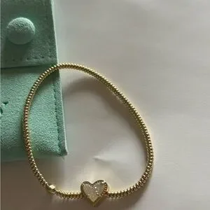 This stunning gold bracelet features a charming heart accent, perfect for adding elegance to any ensemble.