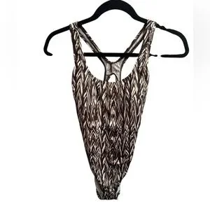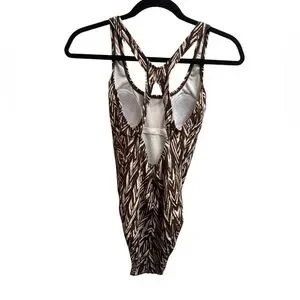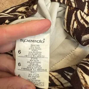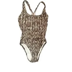 SPEEDO Endurance Women's Chevron One-Piece Swimsuit Brown Tan Racer SZ 6 EUC