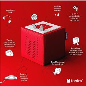 Lightly used Toniebox in great condition! Just a few scratches on top. Comes with the tonies pictured (8). Gently played with and works perfectly, just no longer needed in our home. Soft, durable, and great for little ones who love stories and music.