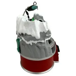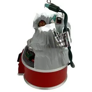 This collectible holiday ornament features a detailed snowy mountain village with a moving train, lights, and sound for festive charm. Ornament is new in box and untested.