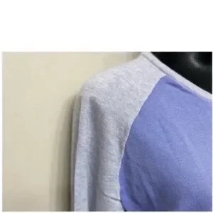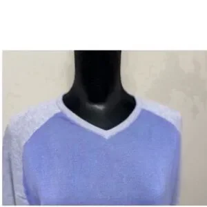 Chic V-neck sweater with a relaxed fit. Features a stylish light purple ( lavender) front and gray sleeves. Ideal for casual wear. The sweater in good used condition. Size M.
