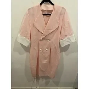 Vintage Pink Double Breasted Blazer Dress White Cuffed Short Sleeve Pastel 80s