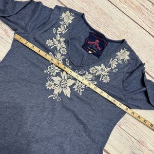 Johnny Was Tess Embroidered Assymetrical Hem Dress Heathered Blue Size Large