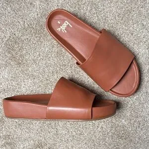 Leather platform sandals with memory foam molded footbed