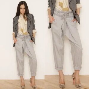 3.1 Philip Lim Gray Thin Stripe Cotton Linen Wrap Front Ankle Pants 2010 Size 6