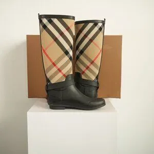 Burberry Simeon Vintage Check Rain Boots Size 37 With Box