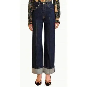 ULLA JOHNSON Genevieve Wide Leg Jeans in Tigris Dark Denim - Women's Size US 26