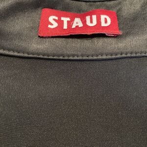 STAUD Rosenda Black Satin Long Sleeve Plunge Neckline Mini Dress FW 2023 Sample