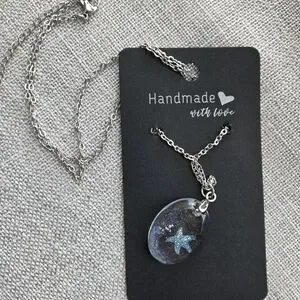 Elegant handmade necklace featuring a silver starfish pendant. Perfect for adding a touch of ocean-inspired charm to any outfit.