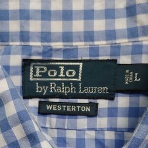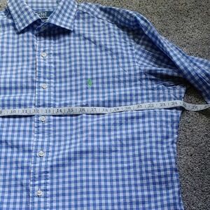 Polo Westerton by Ralph Lauren Mens Blue Check Green Logo Casual Button Down