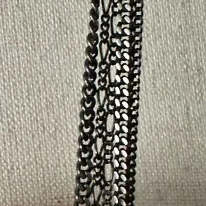 This elegant necklace features a stunning combination gunmetal-tone chains interspersed with clear beads. The sleek design is versatile for both casual and formal occasions.