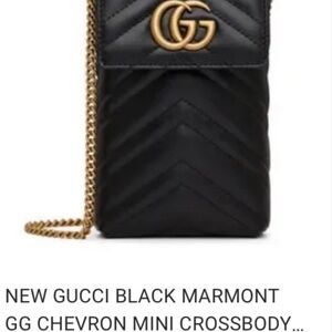 $1390 GUCCI Calfskin GG Marmont Phone Crossbody Bag Black LOWEST PRICE ON PM