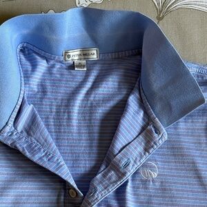Peter Millar Striped Cotton Polo Shirt XL Blue