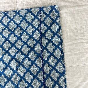 Pristine condition, roller rabbit, one pillowcase, beautiful block print pattern. 100% cotton. Preloved Clean smoke free home. Long king size pillowcase 21" × 35" overlapping, cotton material to hide pillows side Jemina pattern is a signature hand-block floral-style print in blue and white (and sometimes other colors) used across a range of Roller Rabbit products — from garments like bedding pieces. It's known for its vibrant, repeating floral motifs and a playful yet sophisticated block-print look. Use in spare bedroom on day bed, beautiful French print coastal Bohemian style