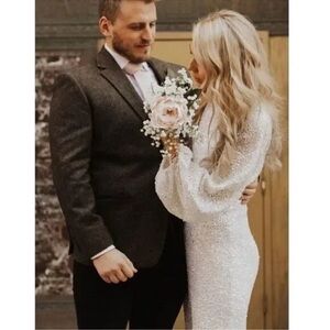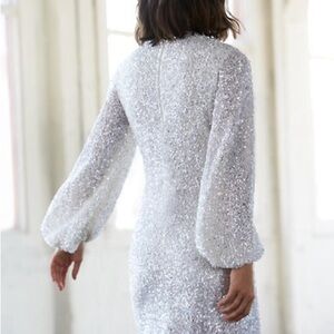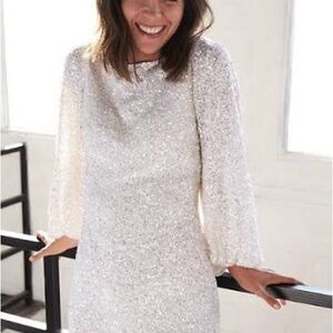BHLDN Anthropologie Goldie White Sequin Mini Dress Long Sleeves