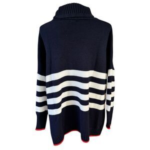 MER-SEA Marina Striped Tunic Sweater in navy blue white stripes red trim OS
