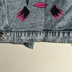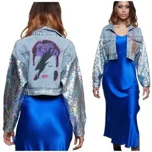 NWT Wren + Glory Hand Painted Bowie Denim Jacket Sequin Cropped Free People O/S